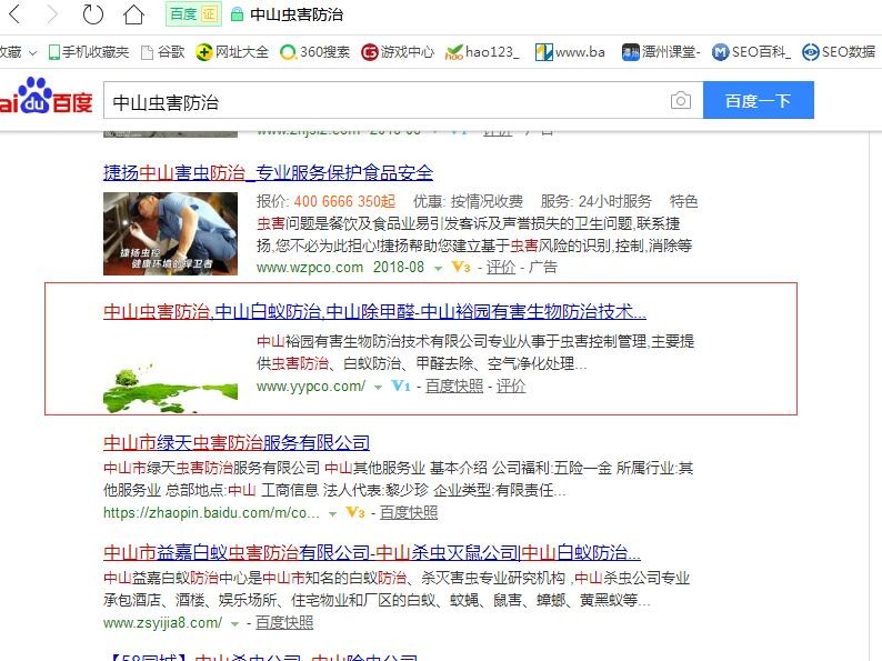 唐山裕圓蟲害防治公司百度自然排名已在首頁